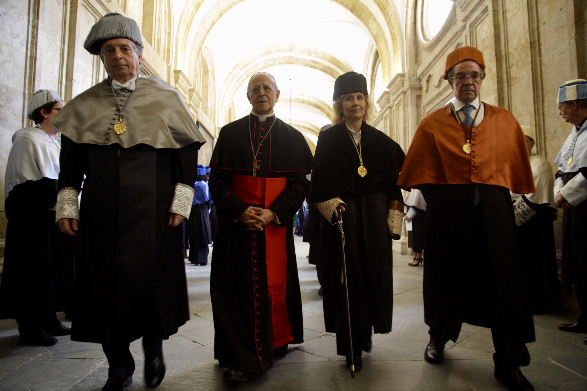 El Claustro Extraordinario de la Universidad Pontificia de Salamanca ha investido esta mañana a César Alierta Izuel y Juan José Almagro García como doctores honoris causa. El acto académico ha estado presidido por el Gran Canciller y presidente de la Conferencia Episcopal, cardenal Ricardo Blázquez Pérez, junto con la rectora de la UPSA, Mirian de las Mercedes Cortés Diéguez, y los vicerrectores Jacinto Núñez Regodón, Pedro Sangro Colón y Ana Mª Andaluz Romanillos.