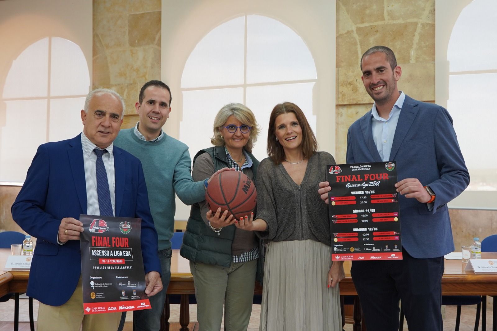 Durante la presentación, la vicerrectora ha señalado que “acoger y organizar la Final Four es una manera de evidenciar la apuesta que hace nuestra Universidad por el deporte como parte esencial del desarrollo de nuestros estudiantes”. En este sentido, el vicepresidente de la Federación ha agradecido esta apuesta de la UPSA y ha valorado el éxito del equipo salmantino, “que en su primera temporada ha cumplido sobradamente objetivos con su clasificación para esta fase de ascenso. Es un éxito total y una excelente noticia para el baloncesto de nuestra ciudad”.