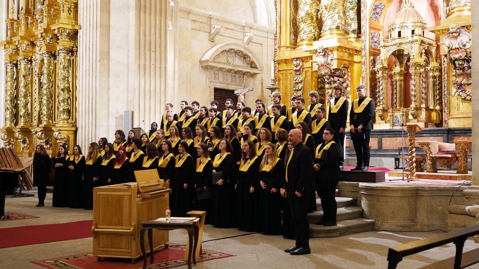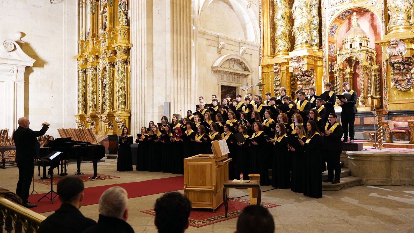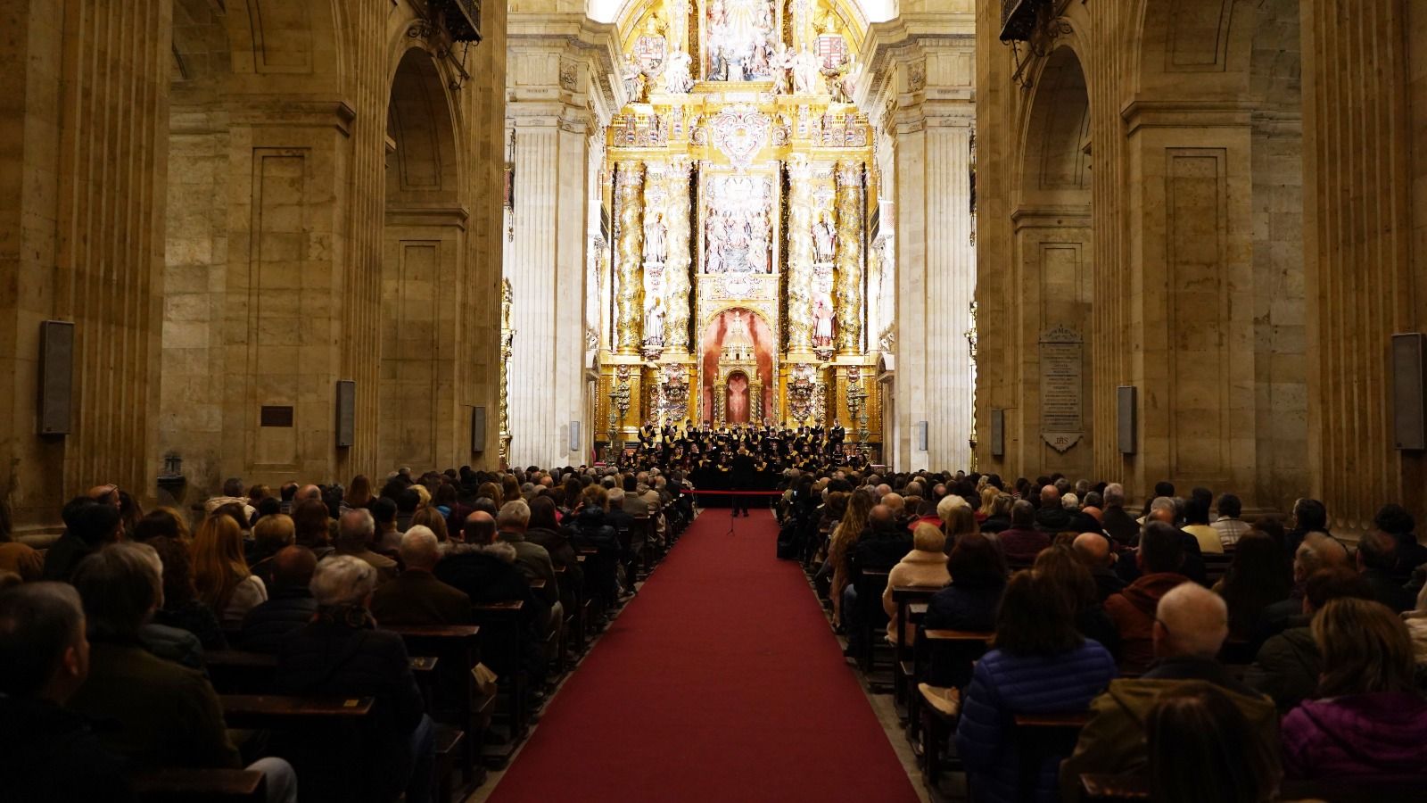 La iglesia de La Clerecía volvió a registrar un aforo completo con motivo del Concierto de Pasión que ofreció el Coro Tomás Luis de Victoria, consolidando el recital en el calendario musical de la Semana Santa salmantina. Alrededor de 600 personas disfrutaron, una vez más, de un repertorio íntimo y variado, brillantemente interpretado por los miembros del Coro.