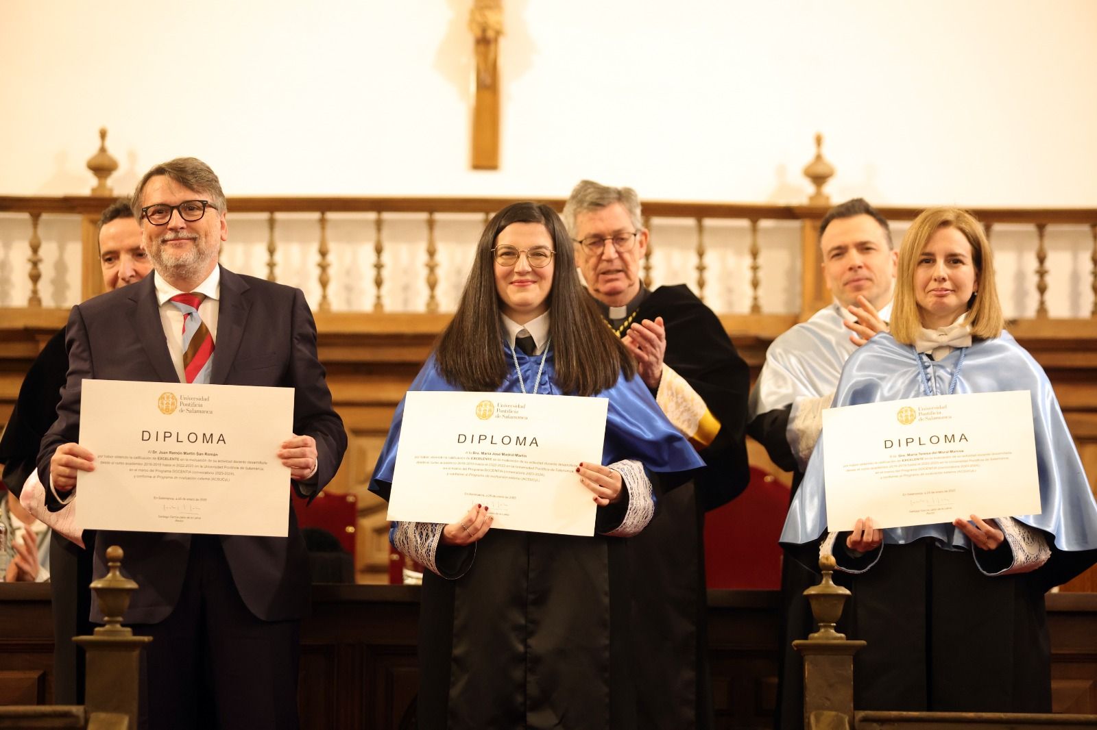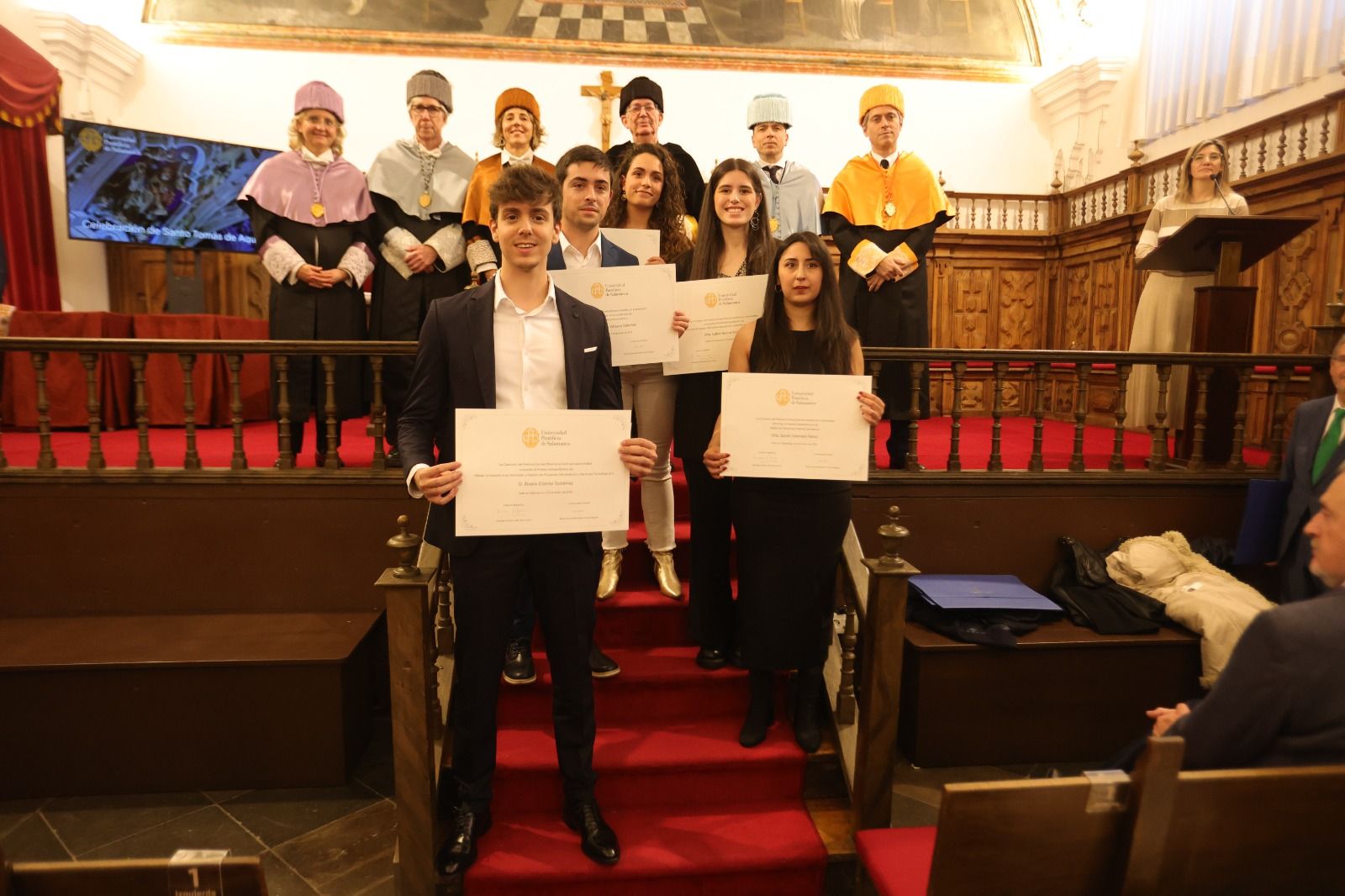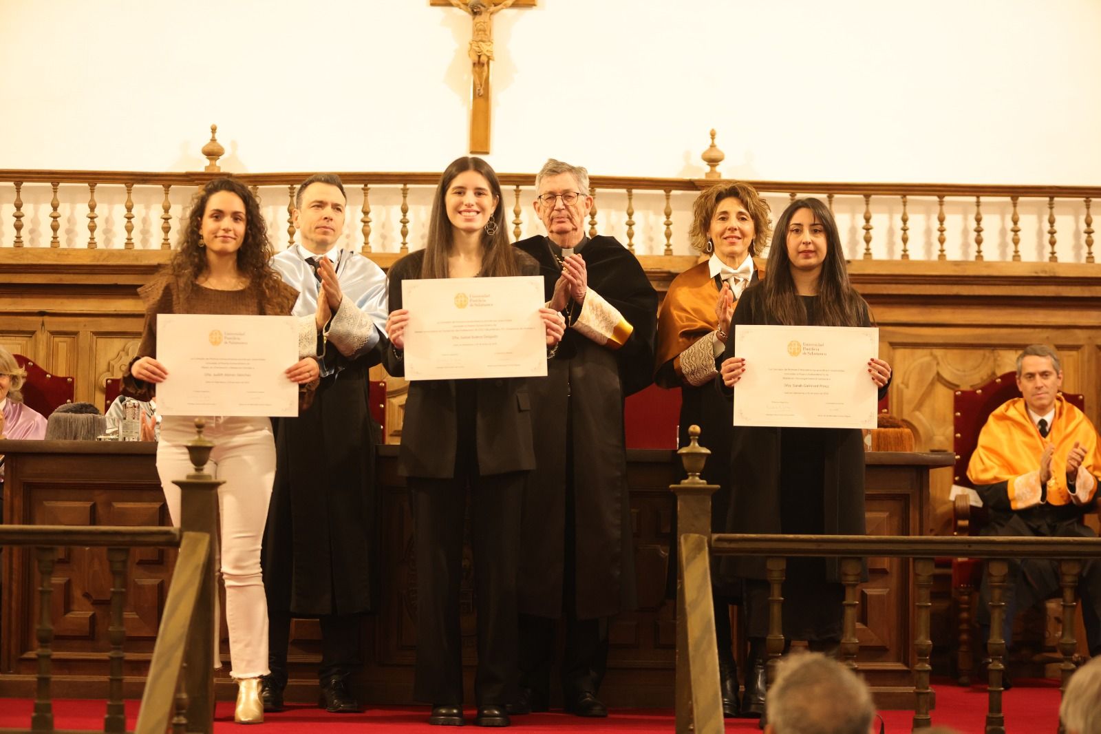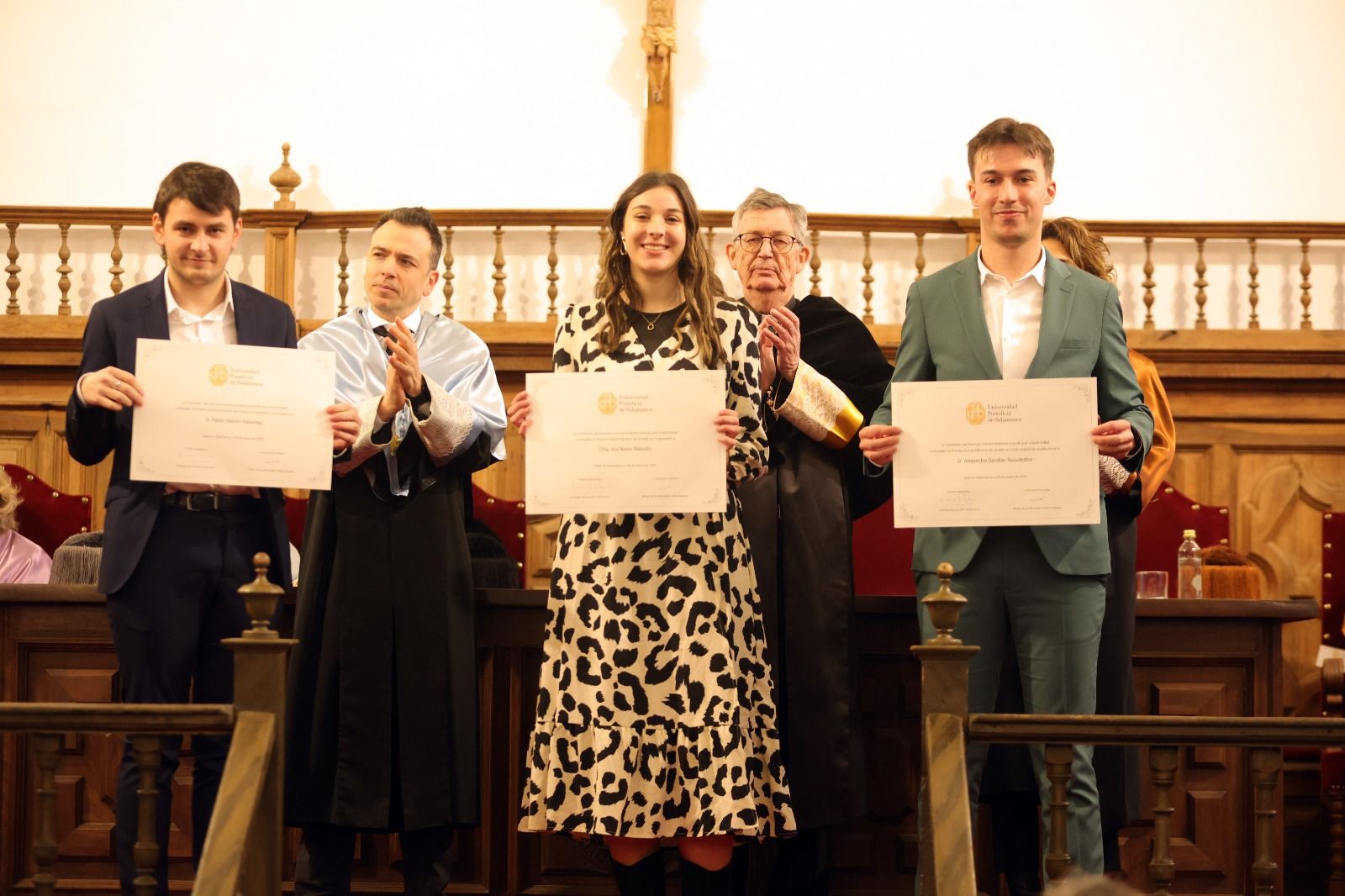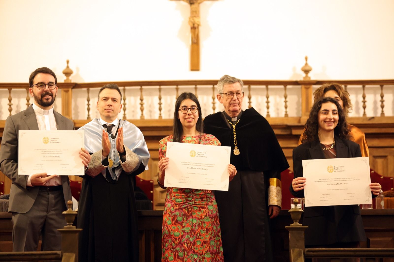 También se han entregado los Premios Extraordinarios de Doctorado a Paula Prieto Hernández, de la Facultad de Psicología, por su tesis ‘Rendimientos neuropsicológicos del Test de Reloj Versión Cacho en población adulta’; a Justo Herráez Jiménez, de la Facultad de Educación, por su investigación titulada ‘Nuevos retos sociales y educativos en el Plan de Acción Tutorial: un estudio de caso’, y a Ricardo Sanjurjo Otero, de la Facultad de Teología, por su tesis ‘Pablo, el ‘presbítero ejemplar’. La caracterización de Pablo como pastor en Hch 15, 36–20, 38’.