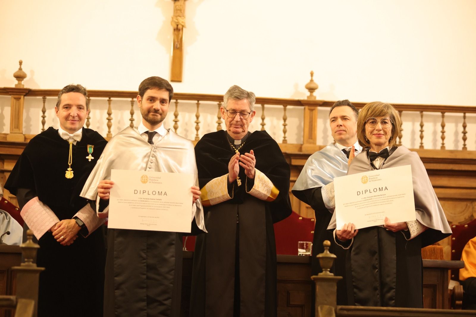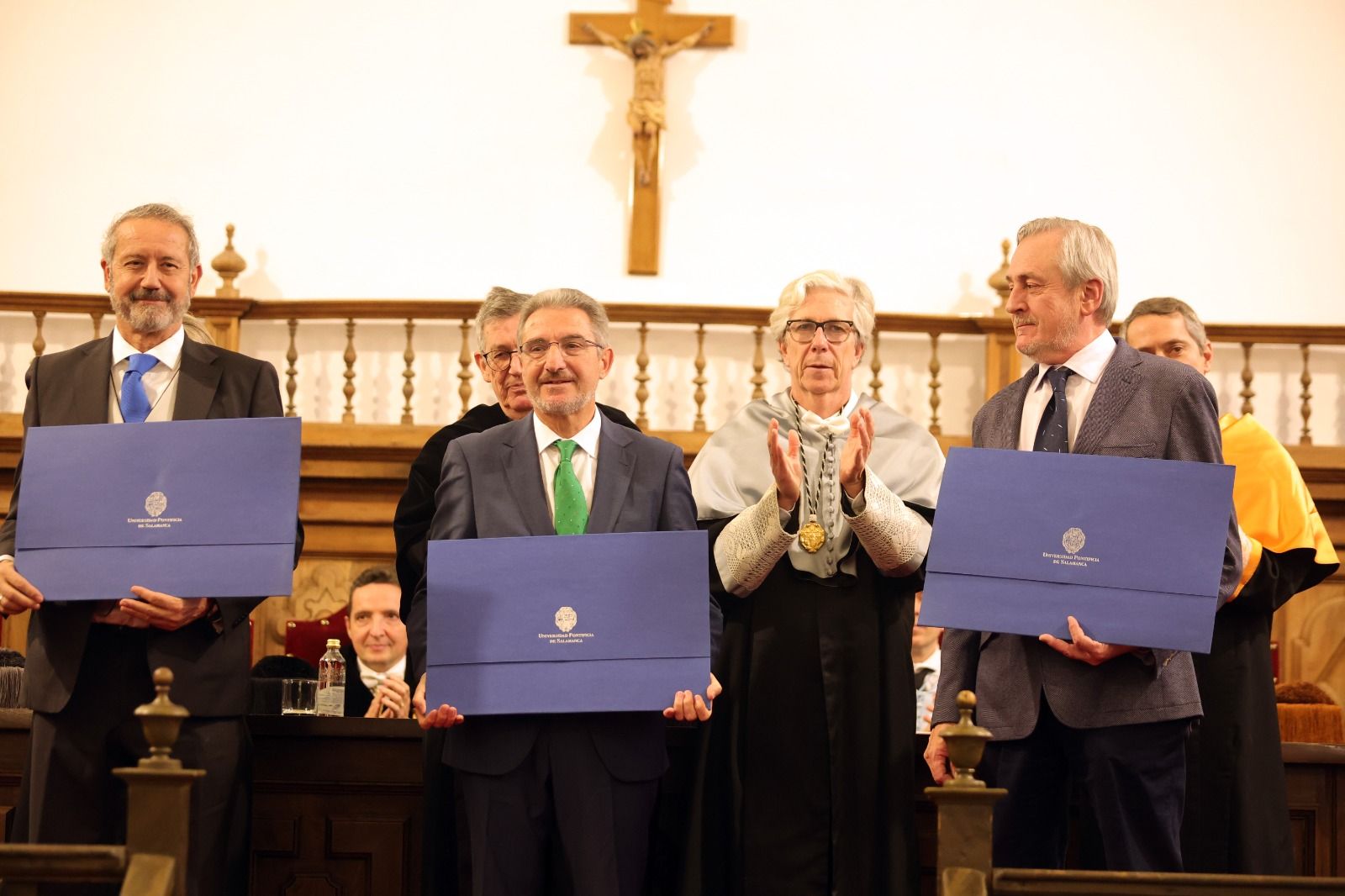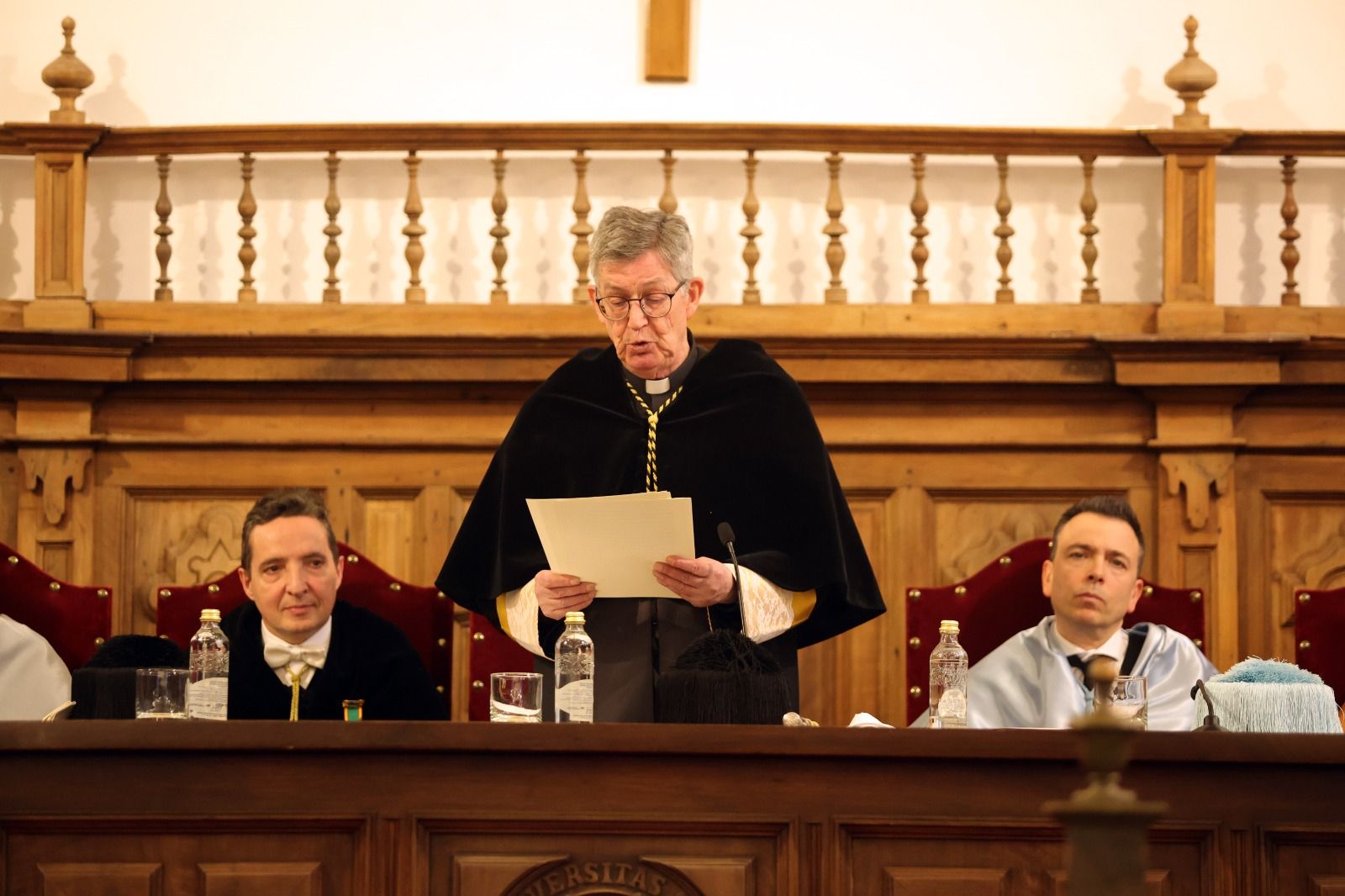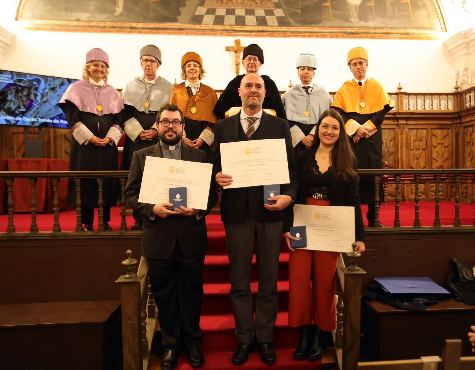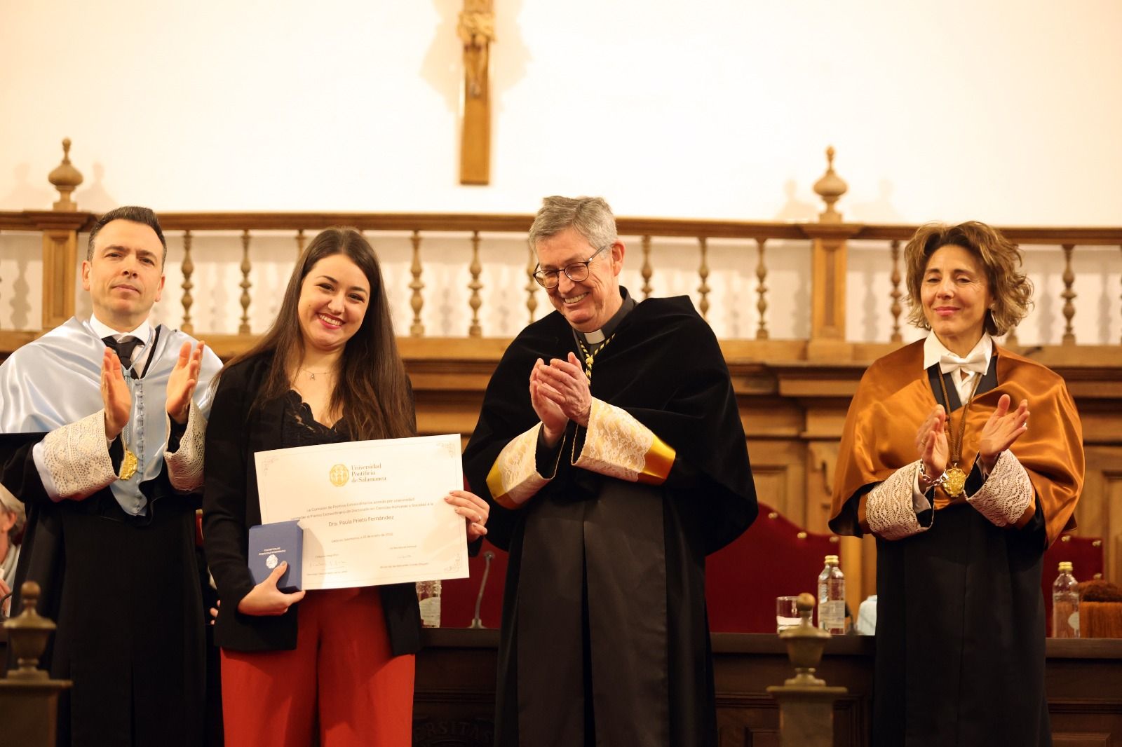También se han entregado los Premios Extraordinarios de Doctorado a Paula Prieto Hernández, de la Facultad de Psicología, por su tesis ‘Rendimientos neuropsicológicos del Test de Reloj Versión Cacho en población adulta’; a Justo Herráez Jiménez, de la Facultad de Educación, por su investigación titulada ‘Nuevos retos sociales y educativos en el Plan de Acción Tutorial: un estudio de caso’, y a Ricardo Sanjurjo Otero, de la Facultad de Teología, por su tesis ‘Pablo, el ‘presbítero ejemplar’. La caracterización de Pablo como pastor en Hch 15, 36–20, 38’.
