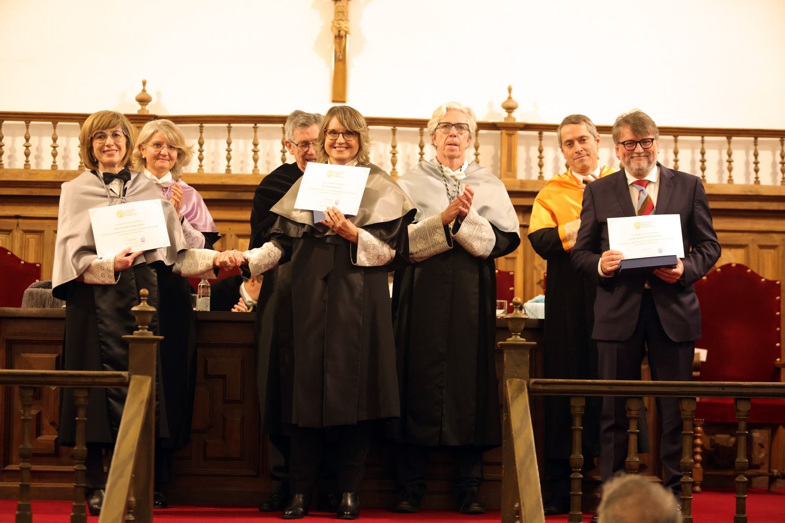 El Rector ha felicitado a los premiados y homenajeados por este reconocimiento. “Durante años, quienes sois hoy reconocidos, habéis trabajado para hacer una Universidad mejor que la que recibisteis. Habéis dedicado vuestro esfuerzo al presente y a una recompensa inmediata o próxima. Pero habéis trabajado también para el futuro, para que quienes habían de sucederos encontraran cauces más limpios, aguas más caudales. Cada uno de vosotros ha dejado su impronta en la Universidad, que, gracias a ello, ha cobrado nueva juventud. A quienes habéis concluido vuestro periplo, la Universidad quiere agradeceros vuestro sacrificio y reconocerlo. A quienes habréis de continuar bogando, querría alentaros a manteneros firmes en vuestra disposición”.