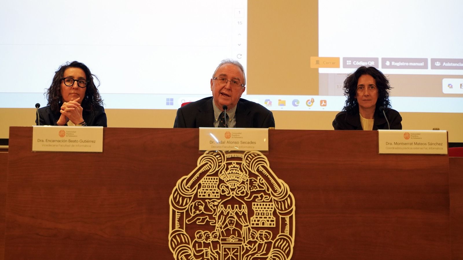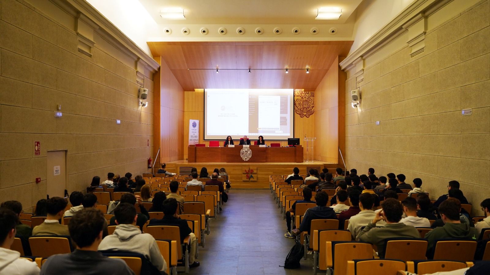 A continuación, ha tenido lugar la presentación del Colegio Profesional de Ingenieros en Informática de Castilla y León (CPIICyL), a cargo de Mercedes Oliva Redondo, vocal de la Junta de Gobierno del CPIICyL; y del Colegio Profesional de Titulares Mercantiles de Salamanca, a cargo de María Luisa Bautista Olivenza, vicedecana del mismo. Las dos ponentes han presentado sus respectivos colegios, mostrando a los alumnos las funciones y posibilidades que ofrecen, así como los perfiles de los colegiados.