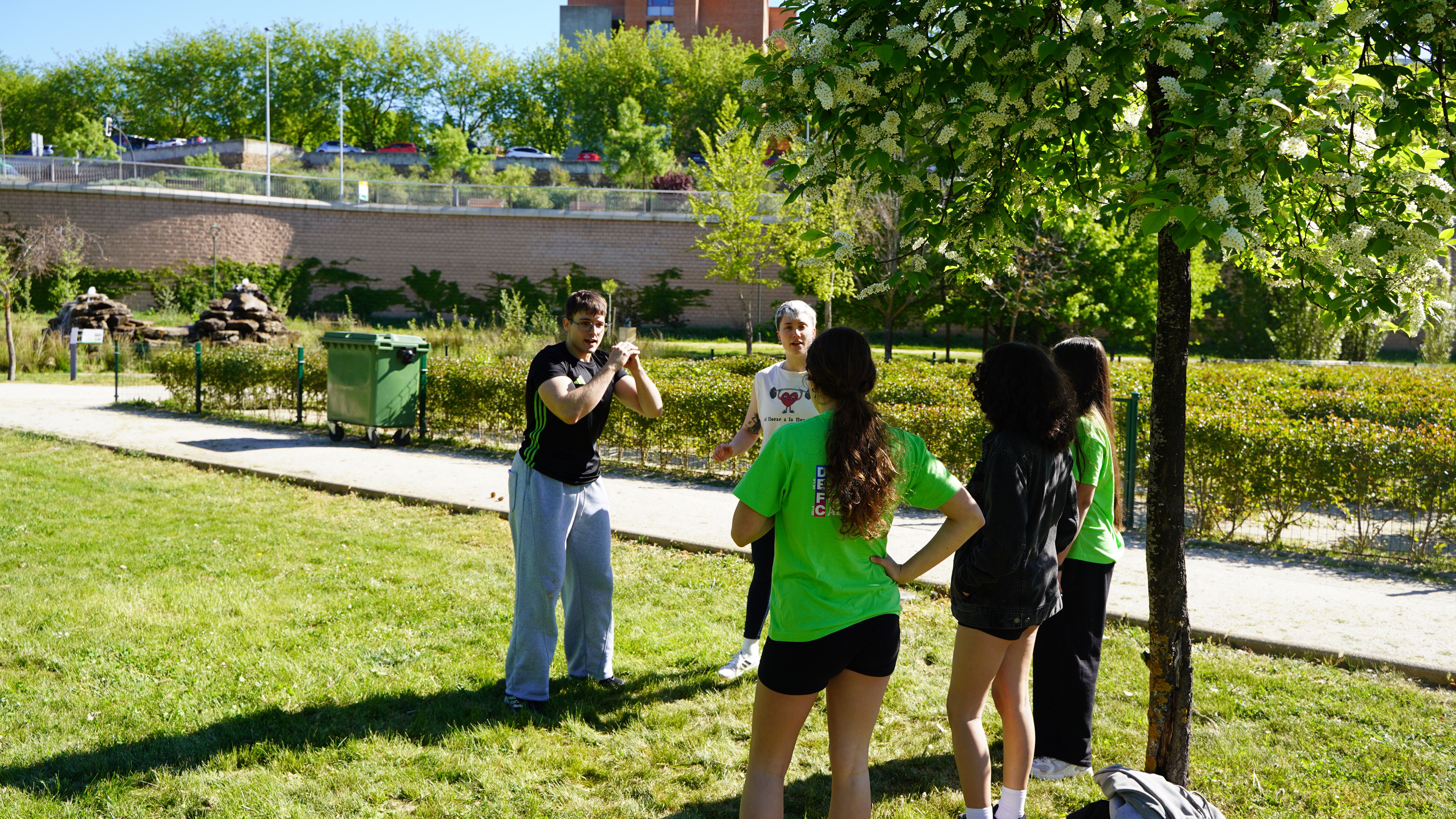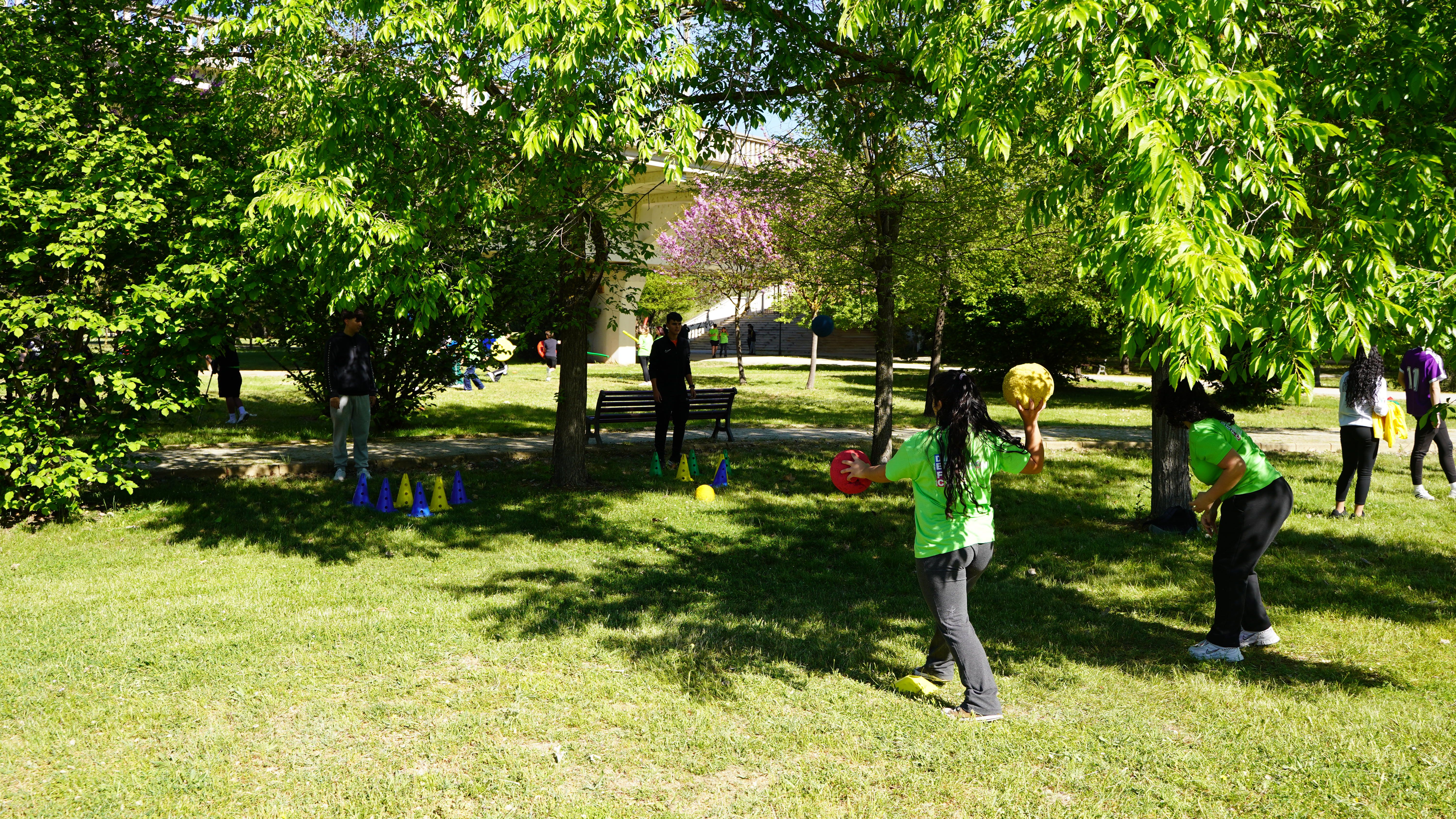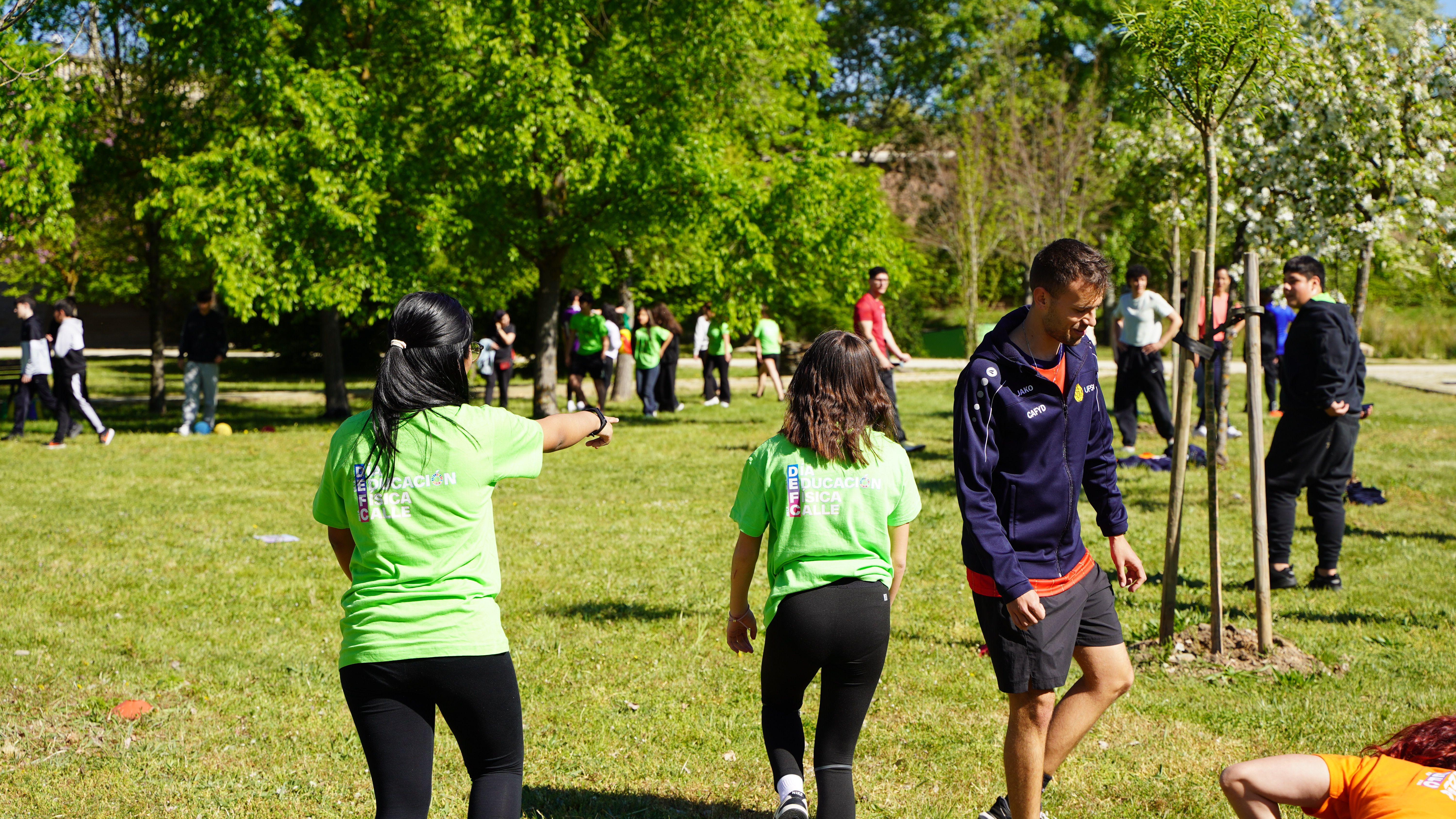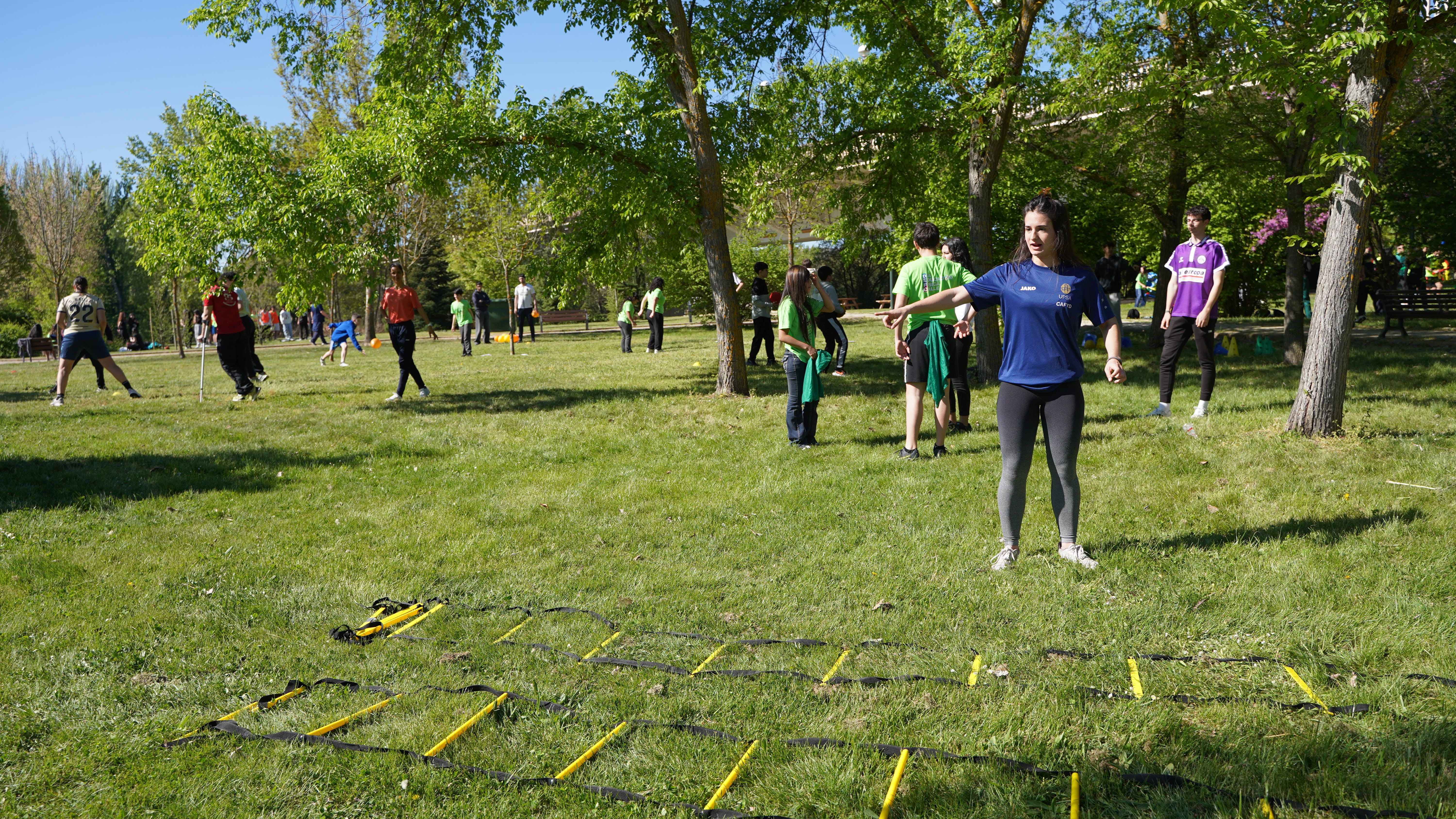 Durante la jornada, los estudiantes de segundo, tercer y cuarto curso del Grado en CAFyD, así como los recién egresados, de forma voluntaria y tutorizados por varios profesores, han organizado tres espacios en los que alumnos de los institutos Lucía de Medrano, Fray Luis de León, Pizarrales Centro, La Cañada y FEFAES han podido disfrutar de distintas actividades al aire libre.