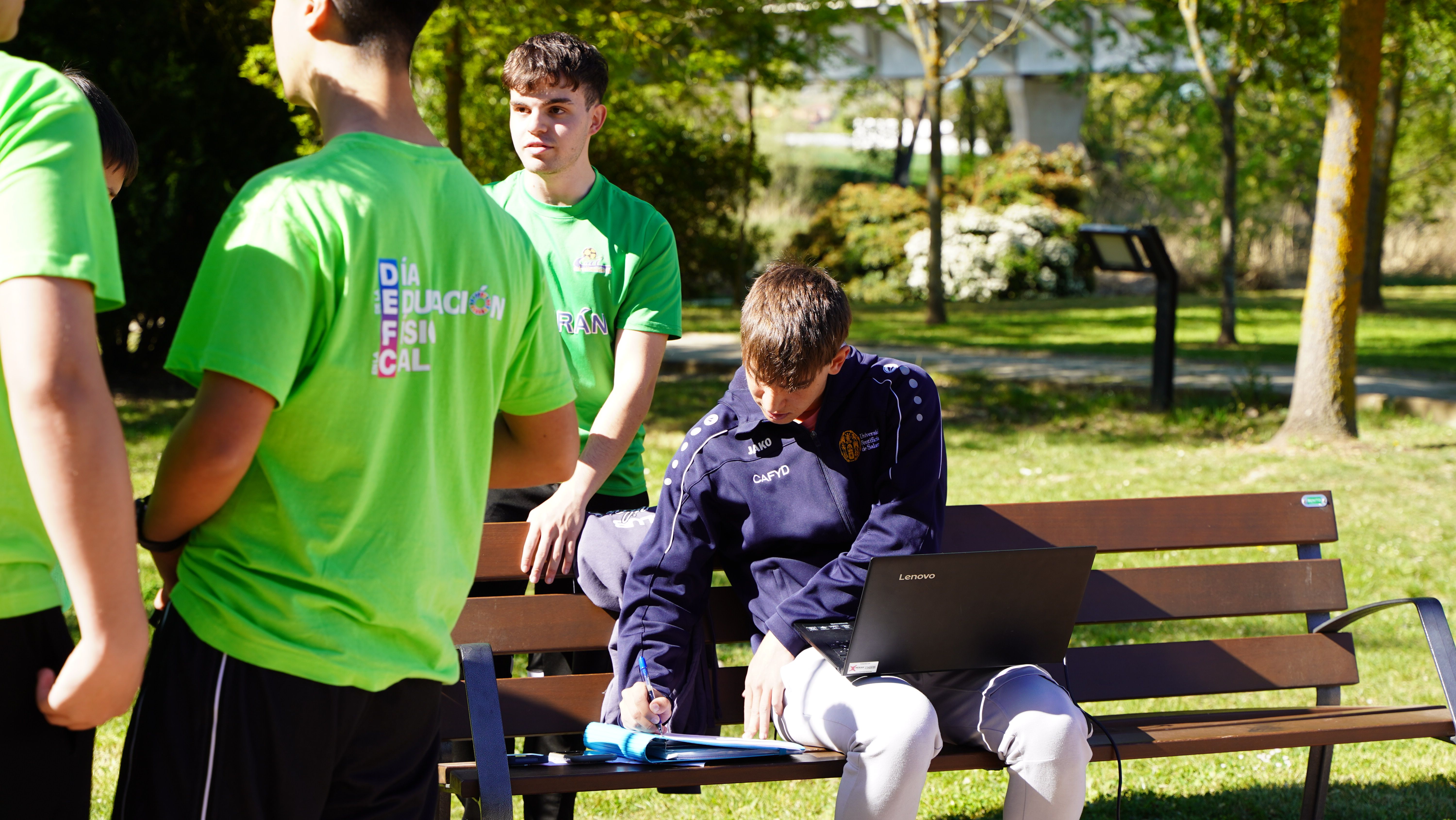 Estudiantes y profesores del Grado en Ciencias de la Actividad Física y del Deporte (CAFyD) de la Facultad de Educación de la Universidad Pontificia de Salamanca (UPSA) han participado esta mañana en el Día de la Educación Física en la Calle (DEFC), promovido por el Ayuntamiento de Salamanca y el IES Lucía de Medrano, y en el que han colaborado 23 entidades.
