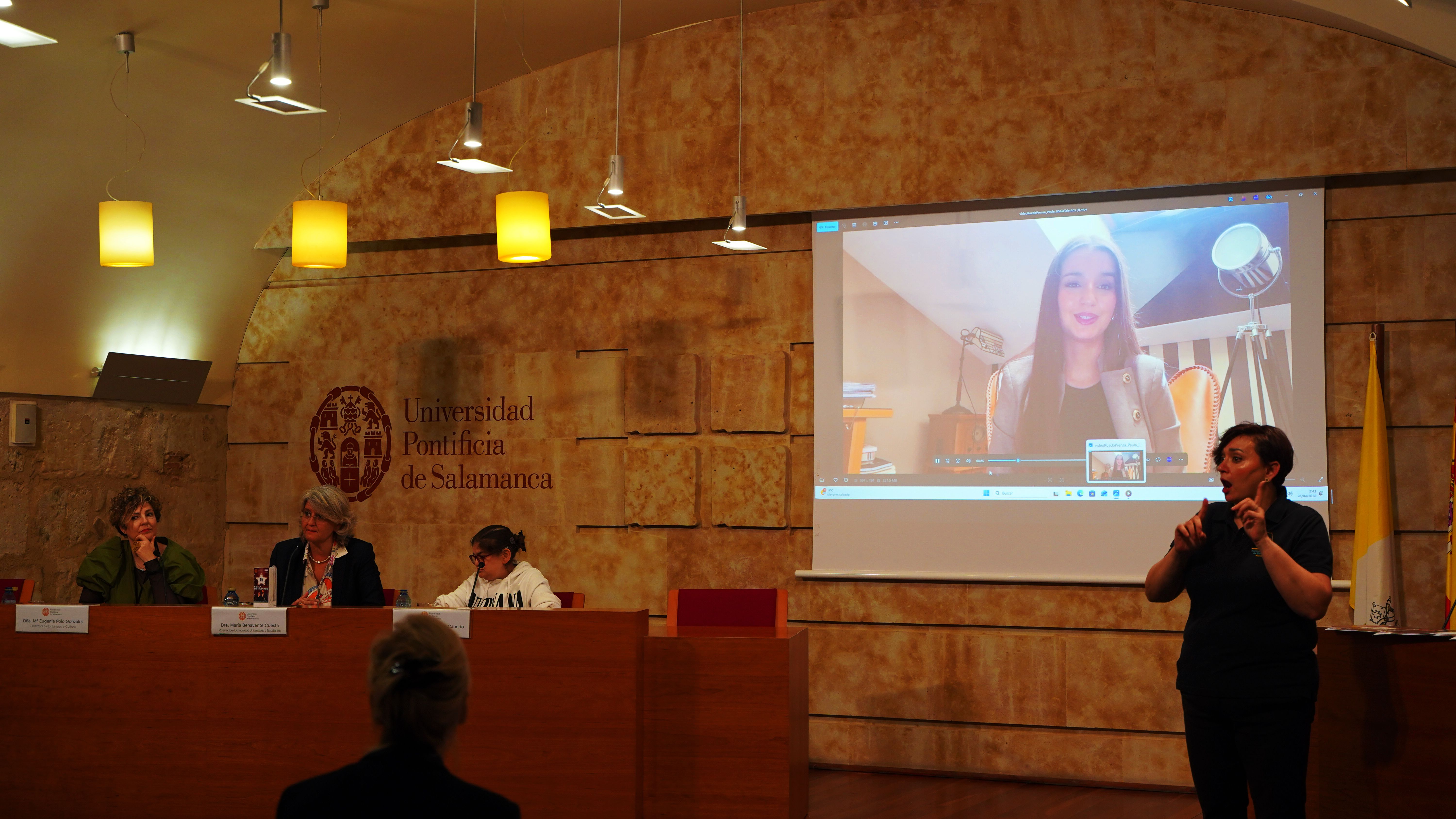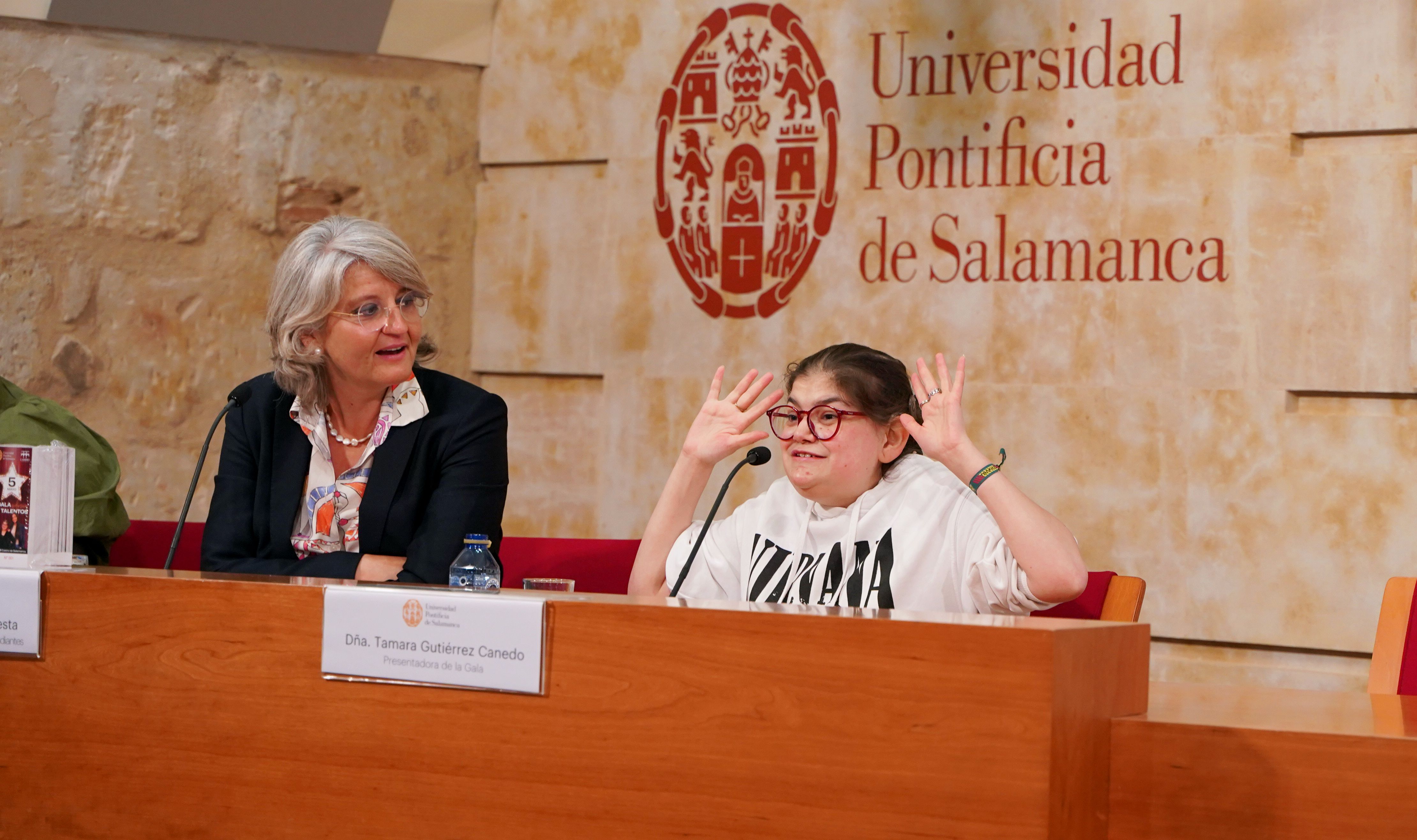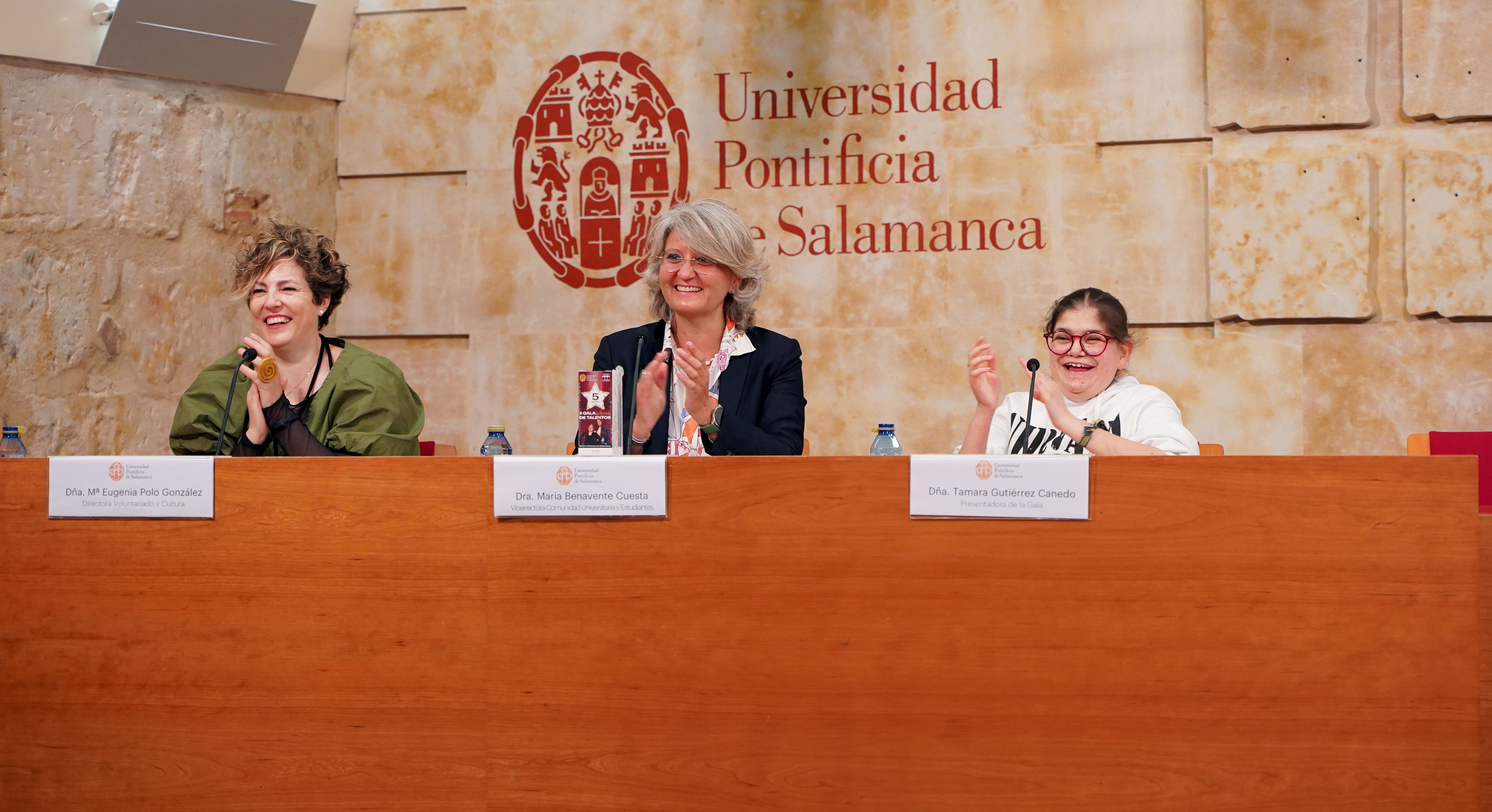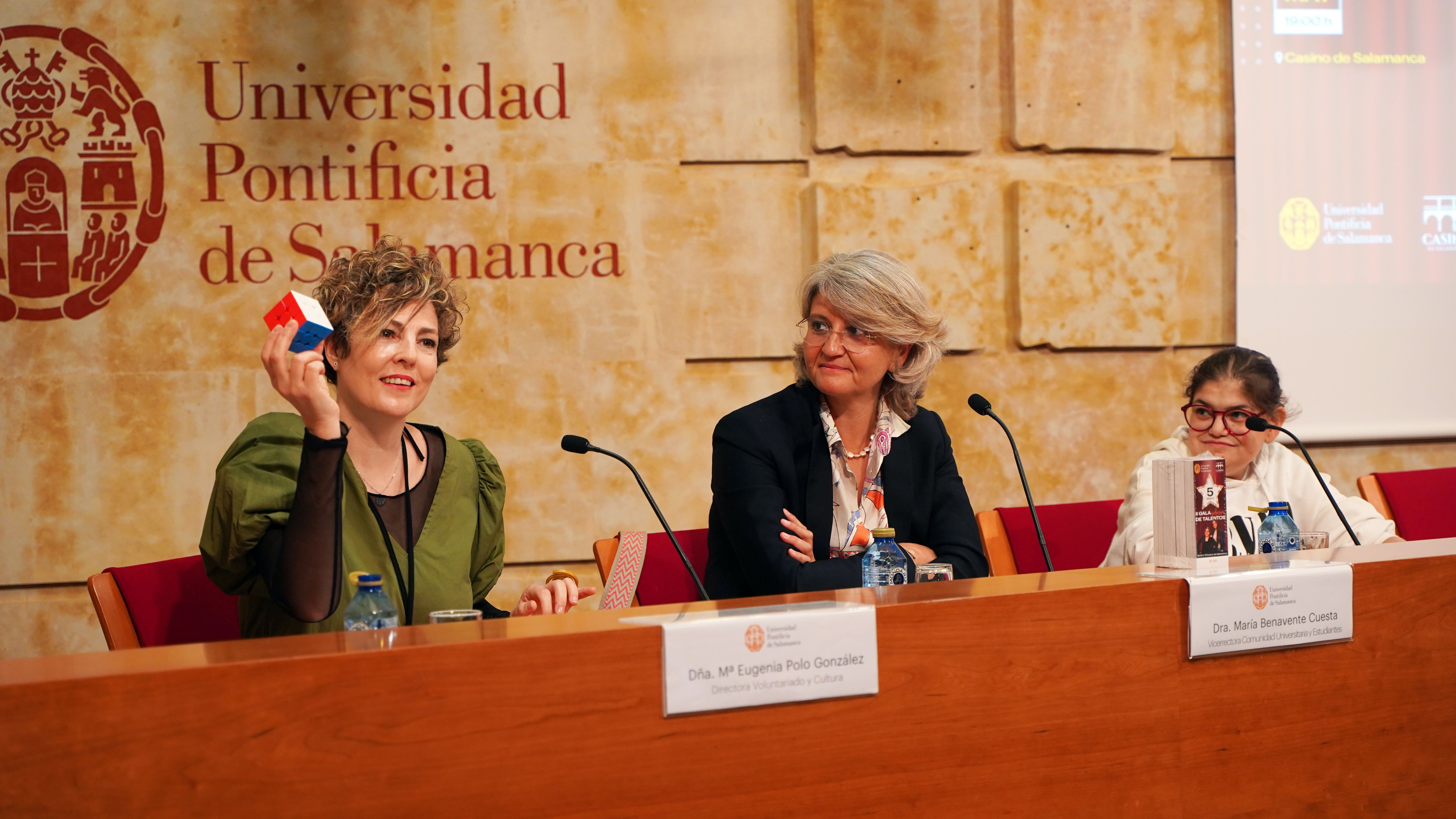 La Universidad Pontificia de Salamanca (UPSA) ha presentado esta mañana la II Gala Inclusiva de Talentos, que se celebrará el próximo 5 de mayo, a las 19:00 horas, en el Casino de Salamanca. El evento contará con numerosas actuaciones culturales, tanto individuales como grupales, relacionadas con la inclusión. La vicerrectora de Comunidad Universitaria y Estudiantes, María Hinojal Benavente Cuesta, acompañada de la directora del Servicio de Voluntariado y Cultura, María Eugenia Polo González, y las presentadoras de la Gala, Tamara Gutiérrez Canedo y Paula Juanes Gil, ha dado a conocer todos los detalles del evento.
