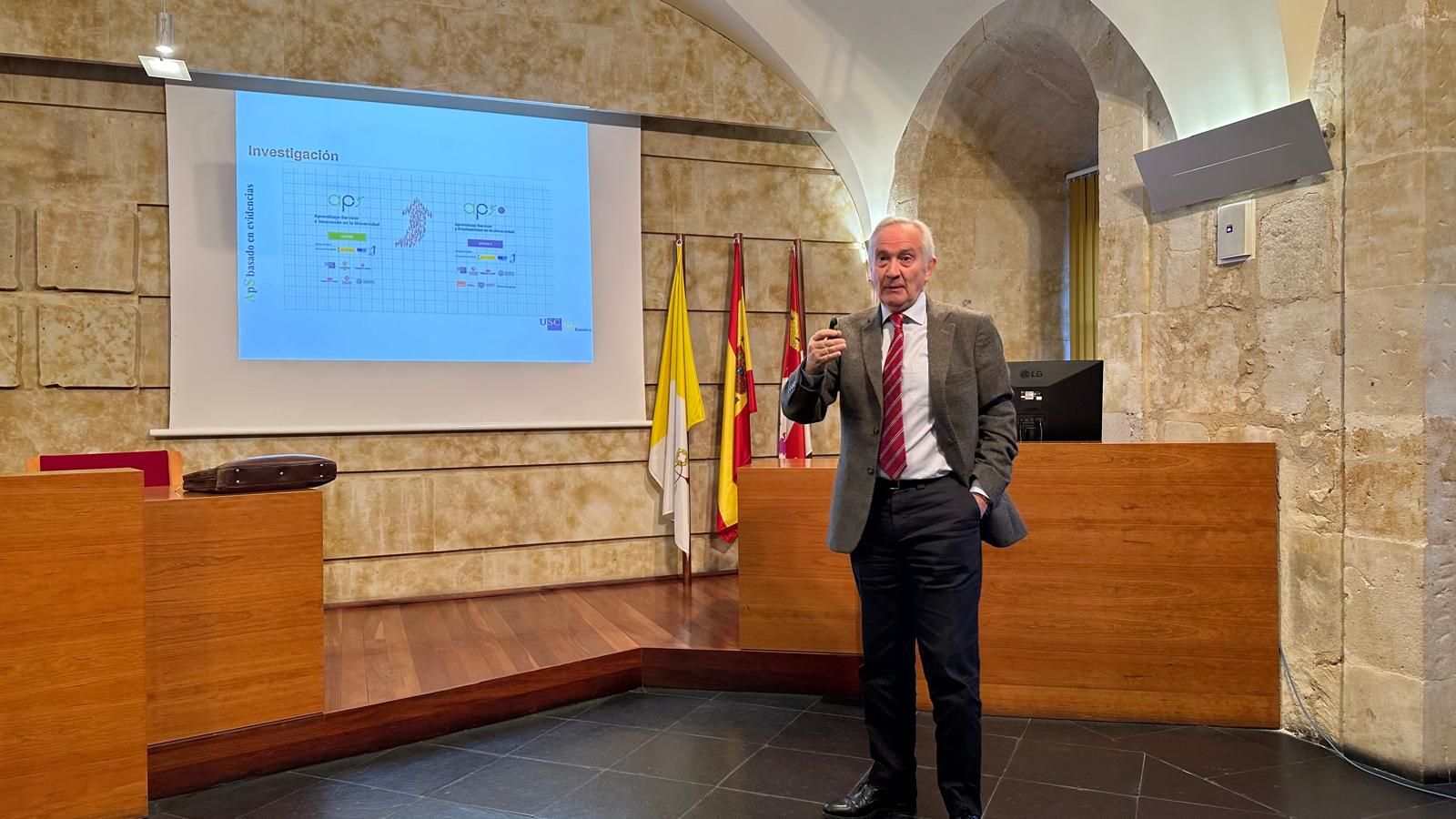 La vicerrectora de Comunidad Universitaria y Estudiantes ha dado también la bienvenida al catedrático de la Universidad de Santiago de Compostela Miguel Ángel Santos Rego, quien ha ofrecido la ponencia magistral titulada La Calidad como eje estratégico del Aprendizaje-Servicio en la Universidad. En su presentación, ha agradecido su presencia en la UPSA: “¡Qué suerte tenerle hoy aquí y poder contar con una persona que tiene tanta experiencia en universidad y en proyectos ApS!”.