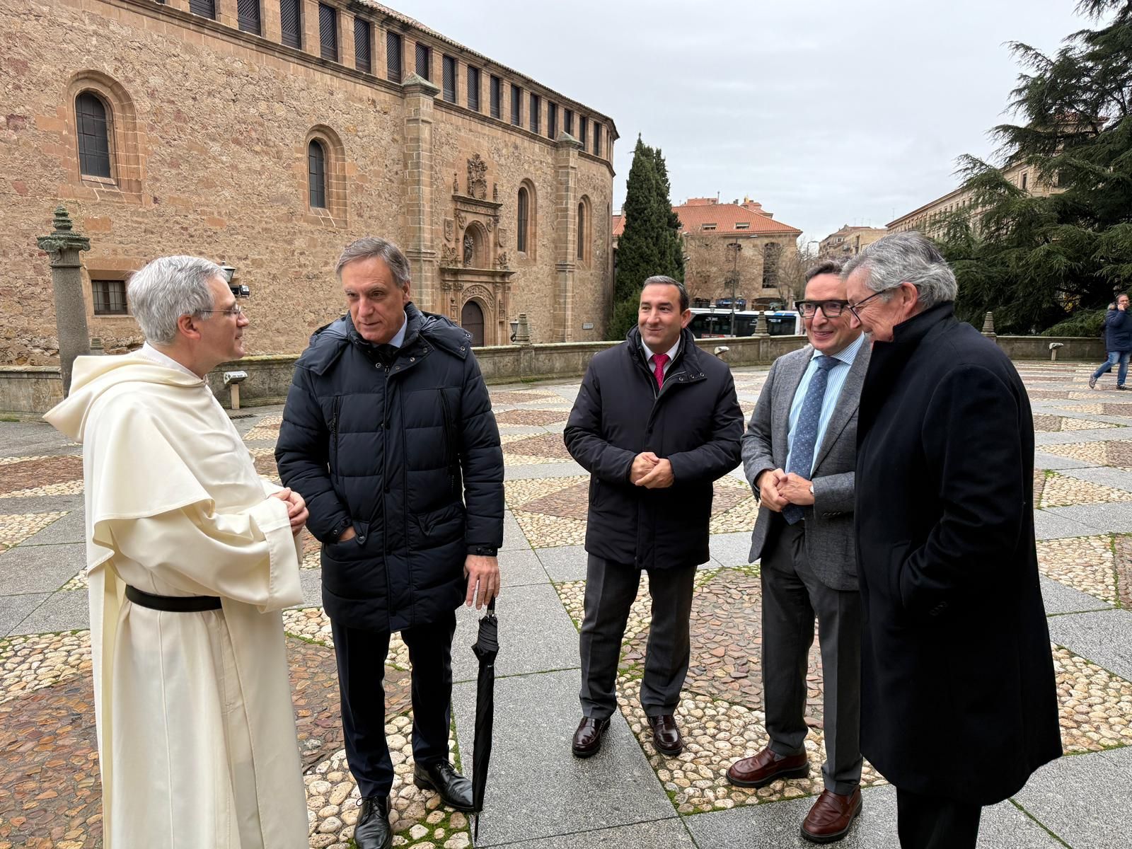 La Universidad Pontificia de Salamanca, el Ayuntamiento de Salamanca, la Junta de Castilla y León, la Universidad de Salamanca (USAL) y la Orden de los Dominicos han rubricado hoy el protocolo para desarrollar en 2026 una serie de actos que conmemoren los 500 años de la Escuela de Salamanca, ya que en 1526 se produjo la incorporación de Francisco de Vitoria a la Universidad. Asimismo, se ha presentado la imagen promocional que acompañará la celebración de la efeméride. Además del Rector de la UPSA, han rubricado el protocolo el consejero de Presidencia, Luis Miguel González Gago; el alcalde de la capital, Carlos García Carbayo; el rector de la USAL, Juan Manuel Corchado; y el prior de los Dominicos en Salamanca, Manuel Ángel Martínez.