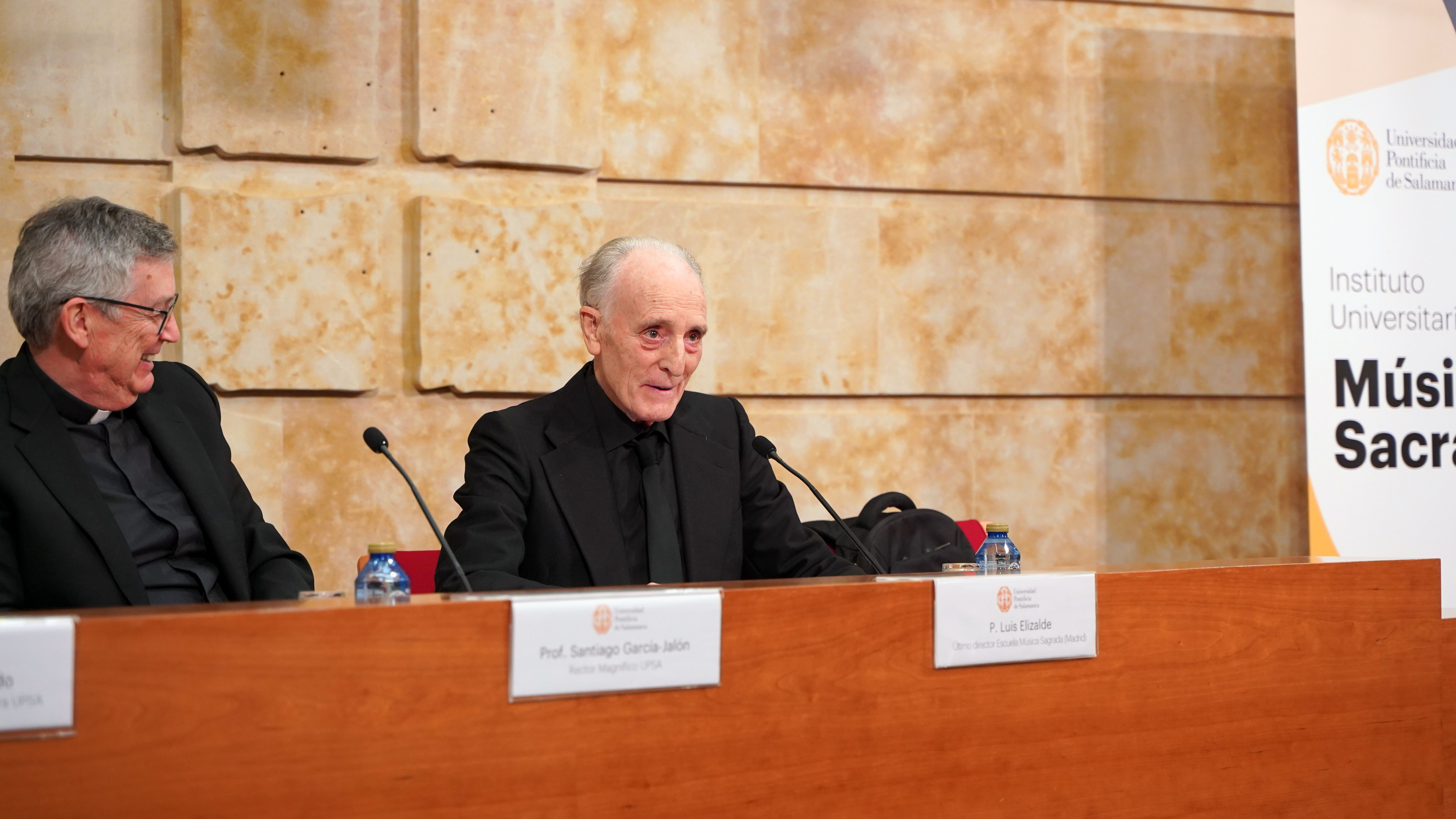 El acto ha contado con la participación del último director y profesor de la histórica Escuela de Música Sagrada de Madrid, clausurada en 1978, cuya trayectoria constituye un referente en el ámbito de la música litúrgica en España, el padre Luis Elizalde. En su intervención, ha realizado un repaso de la evolución de la enseñanza y el desarrollo de la Música Sacra en España durante el siglo XX. Elizalde ha iniciado el recorrido desde la promulgación del Motu Proprio de Pio X (1903) hasta la clausura de la Escuela de Música Sagrada de Madrid en 1978. En este sentido, su orden, Hijos del Corazón de María, fue la encargada de desarrollar esta institución desde 1930.