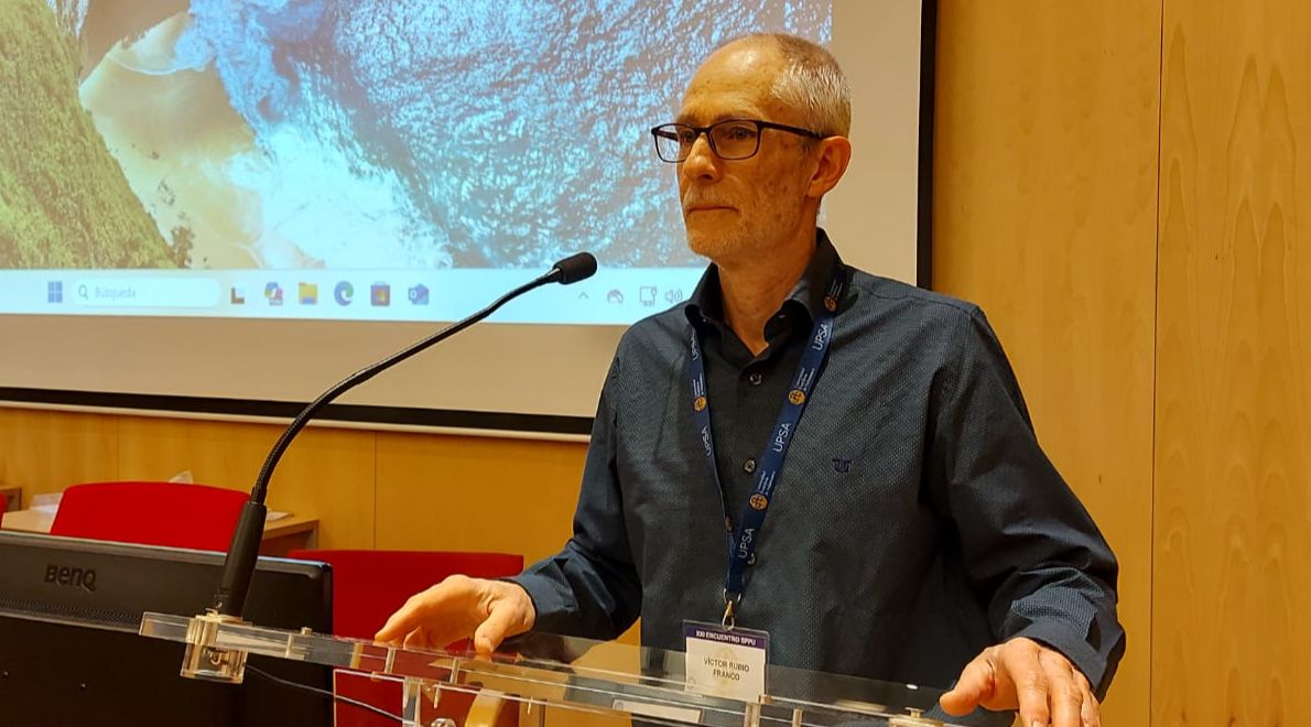 El profesor Víctor Rubio Franco, de la Universidad Autónoma de Madrid, ha cerrado esta mañana el programa del Encuentro con la conferencia titulada ‘Ahí hay una disciplina que dice ¡AI! Desafíos y oportunidades de la inteligencia artificial en la evaluación e intervención psicológicas’.